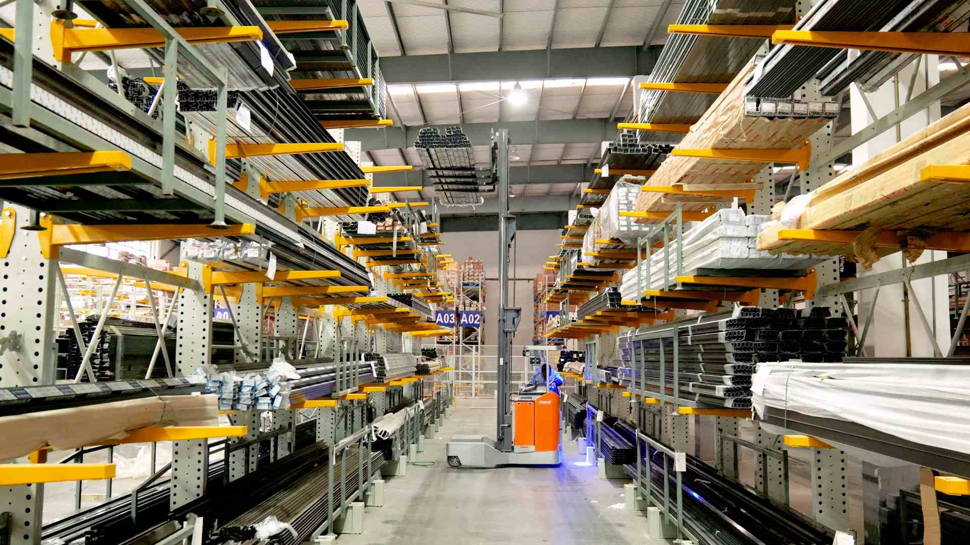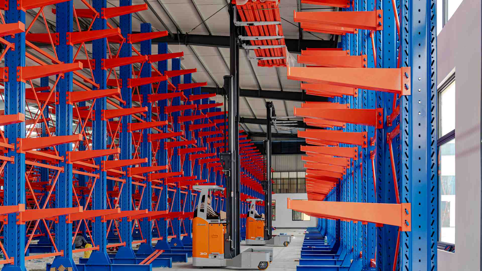 يمنح نظام القيادة الفريد من نوعه في نظام RSEW ميزة كبيرة عند تخزين المواد الطويلة في الممرات الضيقة، مما يقلل بشكل كبير من الحاجة إلى ممرات النقل ويسمح بوضع المزيد من الرفوف في مساحة التخزين المحدودة سابقًا. وهذا يحسن بشكل كبير من استغلال المستودع.