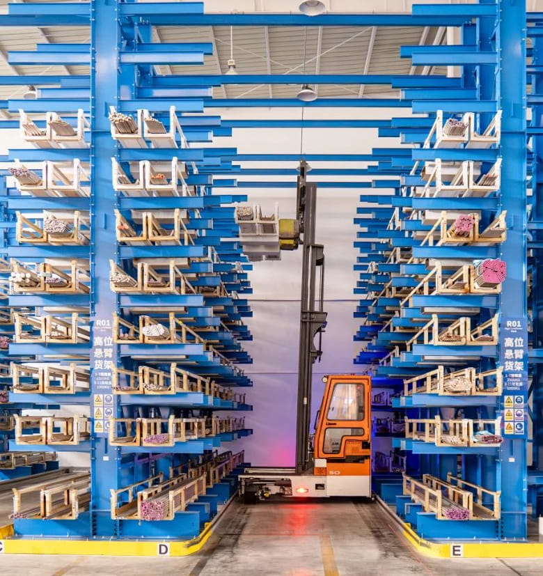 تتميز سلسلة WSHM بقدرتها الفائقة على تخزين المواد الطويلة في الممرات الضيقة، تقليل متطلبات عرض الممر بشكل كبير مما يسمح بوضع المزيد من الرفوف داخل مساحة المستودع المحدودة وتحسين استخدام التخزين بشكل كبير.